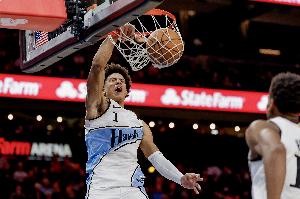 体育资讯11月23日讯 NBA常规赛,老鹰115-98大胜鹈鹕。杰伦·约翰逊出场34分29秒,15投6中(三分4中2),罚球6中4,拿到18分11篮板9助攻1盖帽,正负值+20全场最高。
