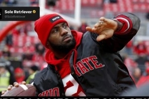 体育资讯10月27日讯 球鞋媒体Soleretriever报道,詹姆斯和Nike为家乡俄亥俄州立大学橄榄球队制作了橄榄球版本的特殊鞋款。
